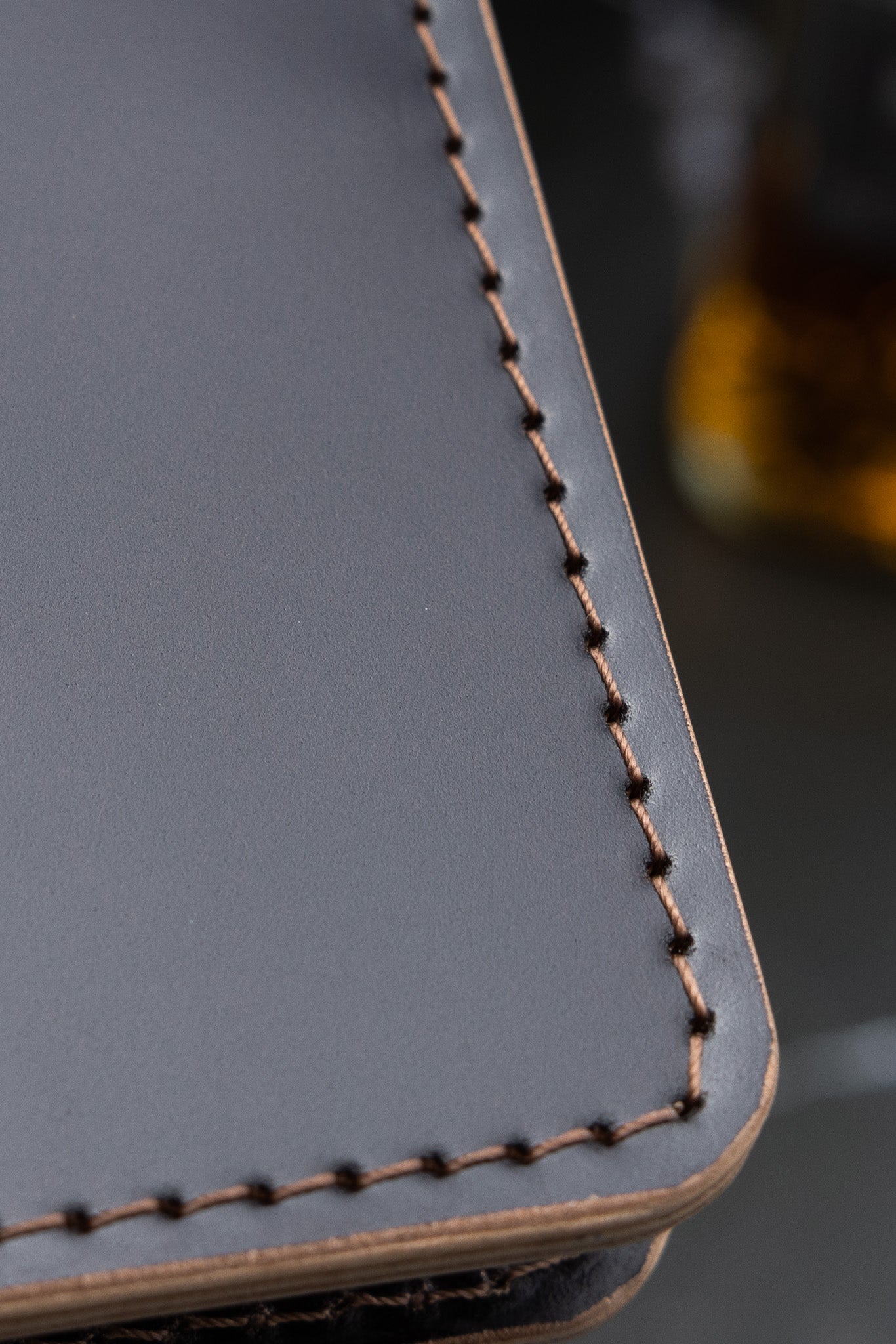 Beautifully burnished edges. We don't wrap paper thin leather around a plastic body.